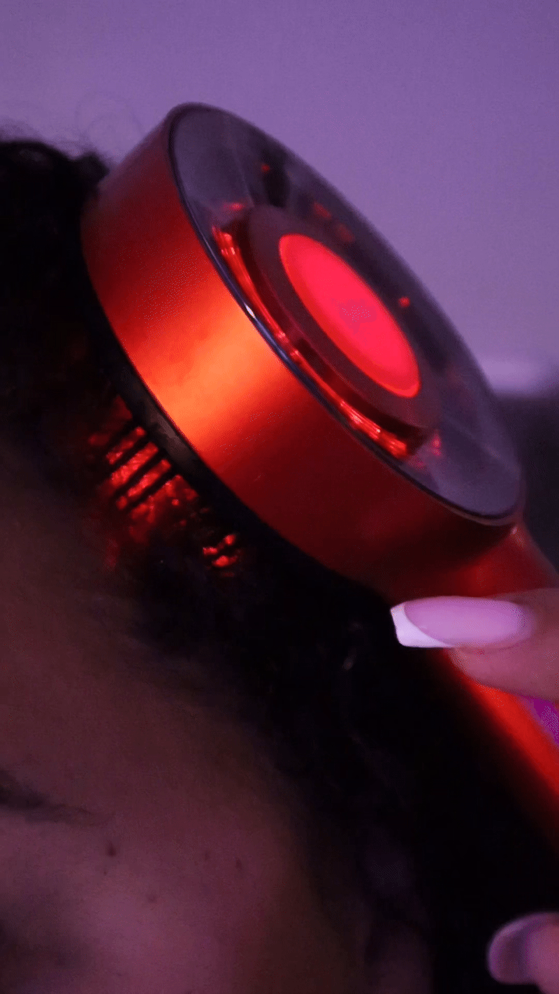 גלו את השינוי עם מסרק העיסוי שלנו בטכנולוגיית אור אדום, שמפעיל את זקיקי השיער ומעודד צמיחה נראית לעין ונפח מרשים